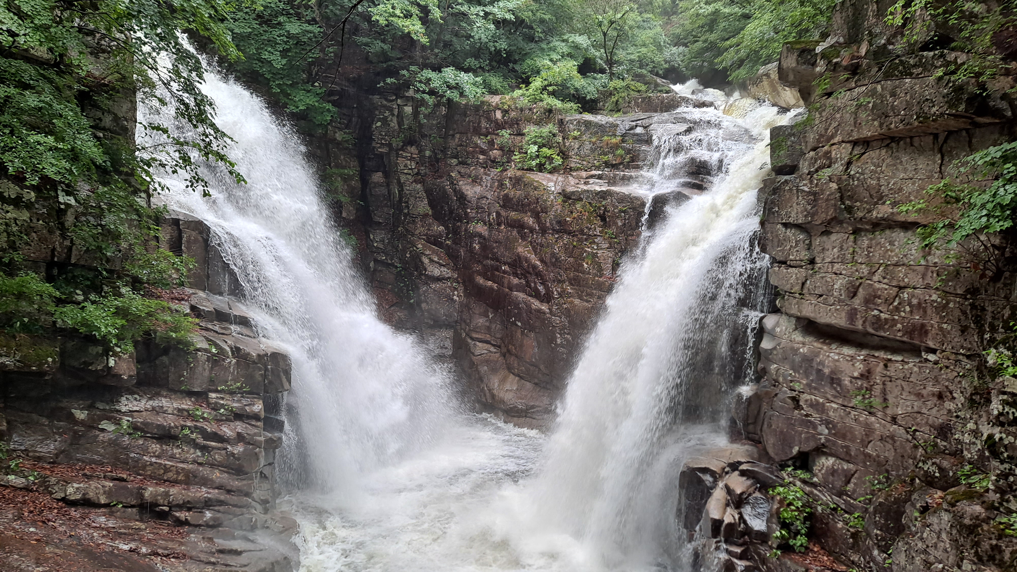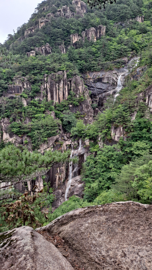 기암괴석 사이로 떨어지는 폭포수가 눈길을 사로잡는다.
